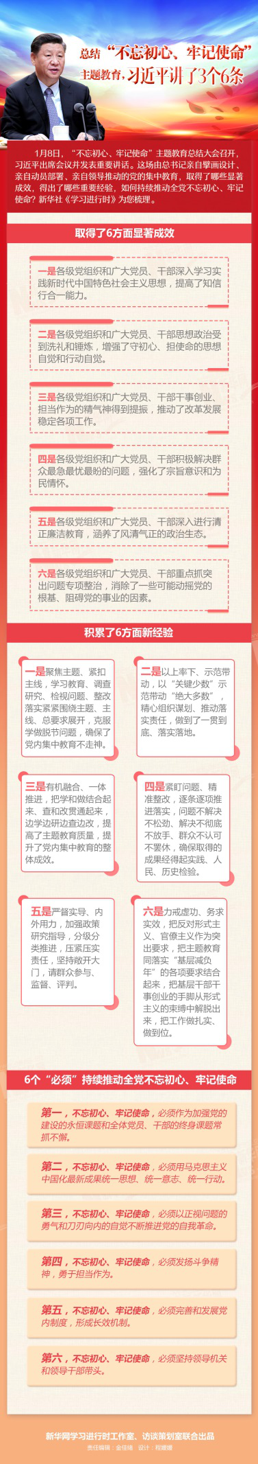 总结“不忘初心、牢记使命”主题教育,习近平讲了3个6条