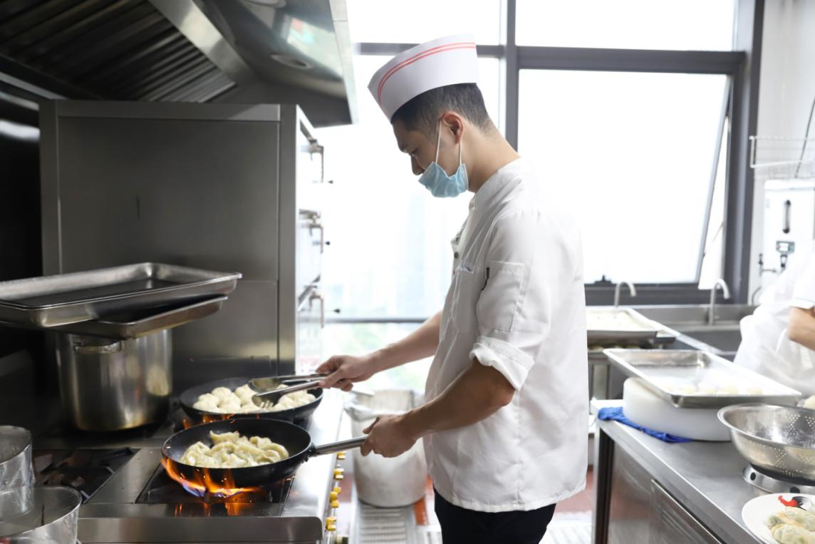 面点师傅把包好的饺子,包子烹饪熟
